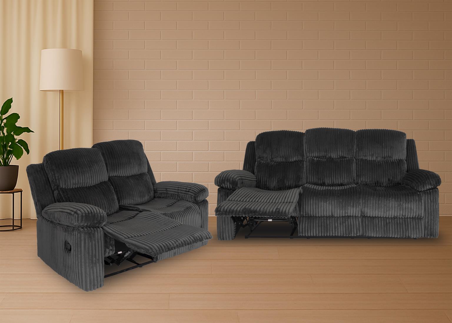 MIA MANUAL RECLINER SOFA MIDNIGHT CORD
