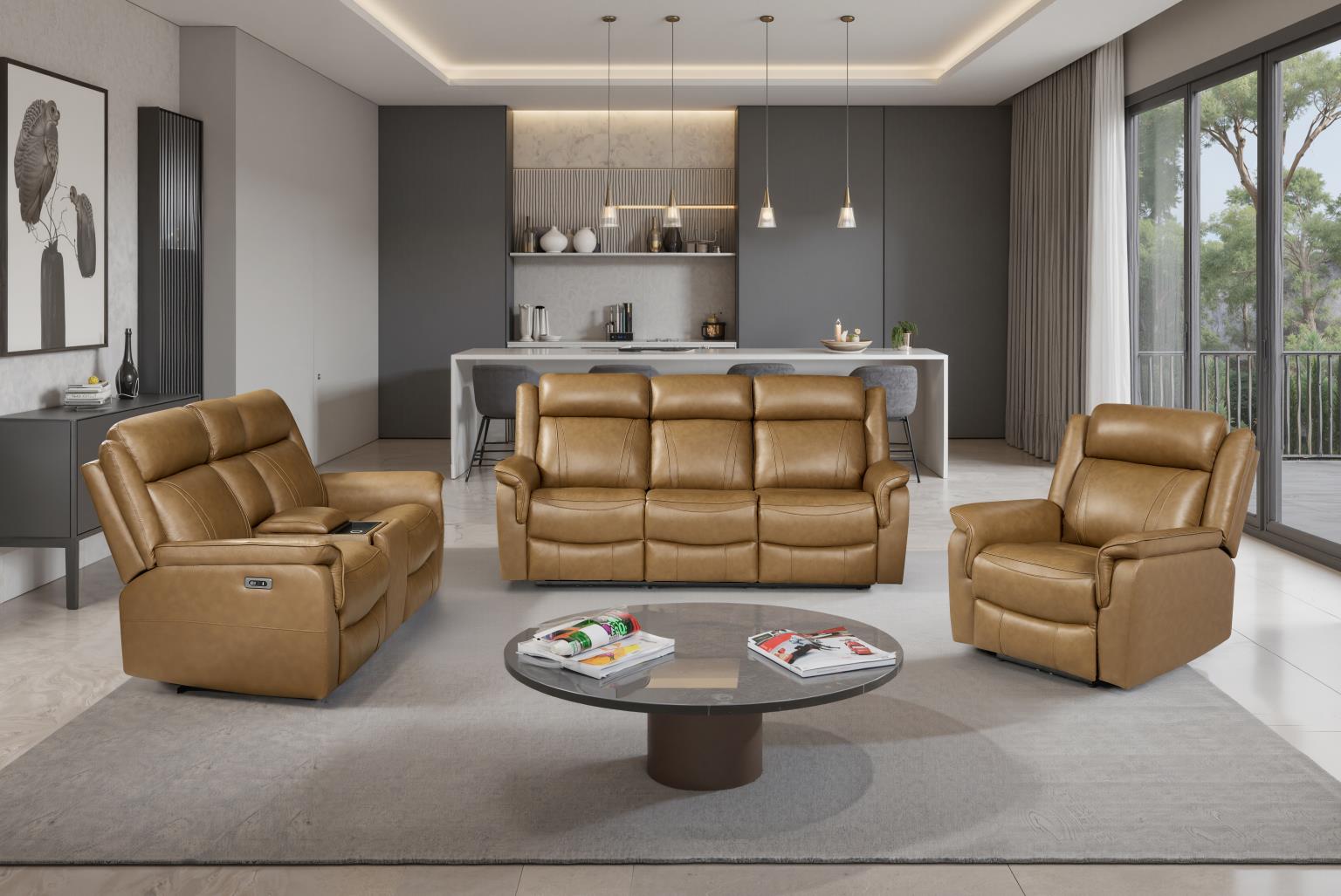 ORONO 3PC SET BEIGE LEATHER