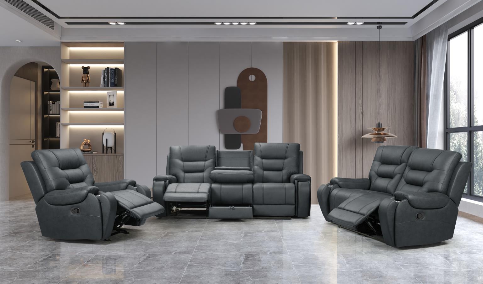 PORTO MANUAL RECLINER SOFA W/ DDT, DR & ELECTRICAL PANEL D185-25