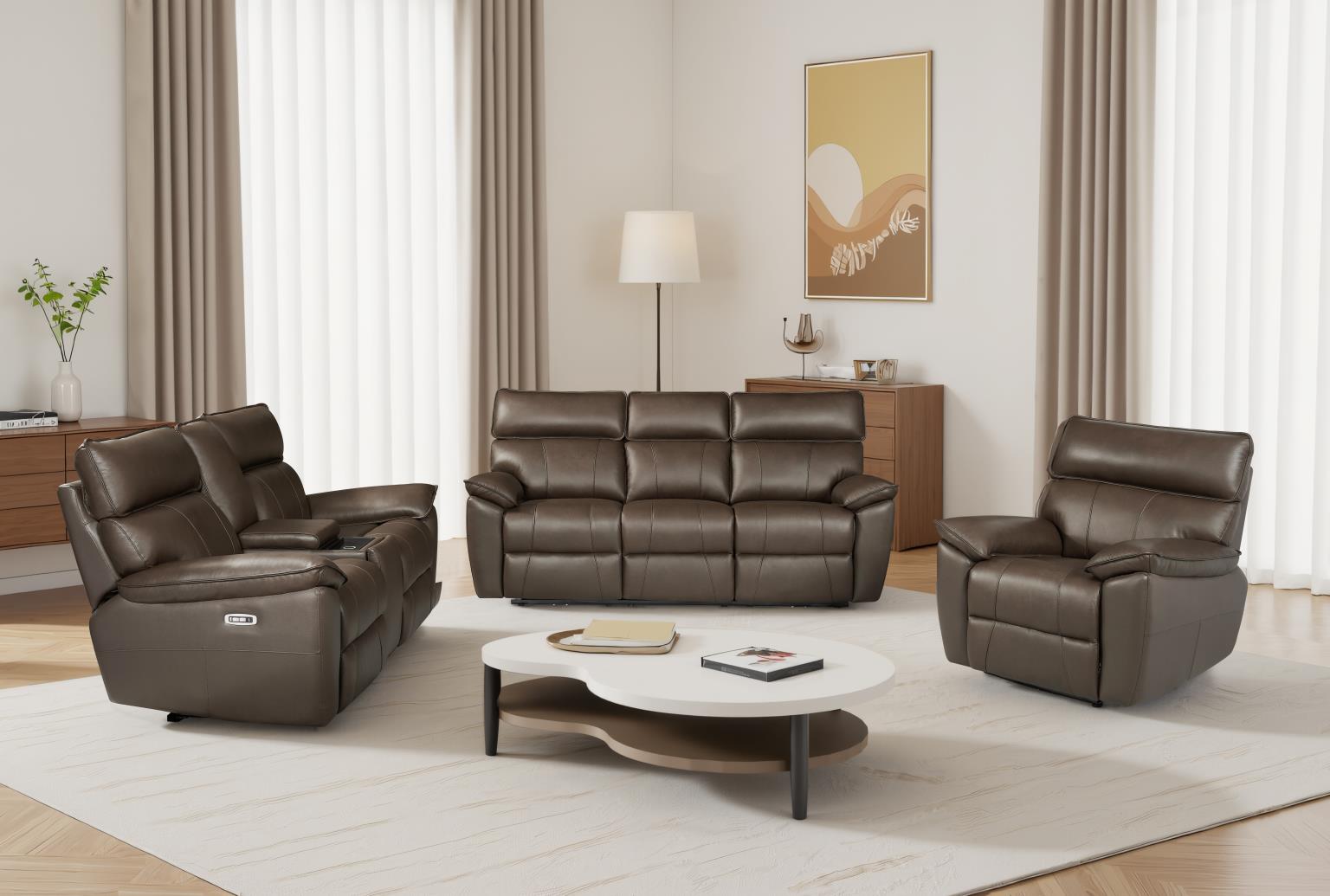 RESTON POWER RECLINER SOFA DARK BROWN LEATHER