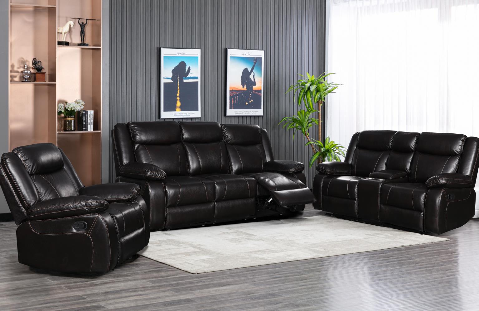 SALEM 3PC SET LEATHER AIR BLACKBERRY ( SOFA + LOVESEAT + CHAIR )