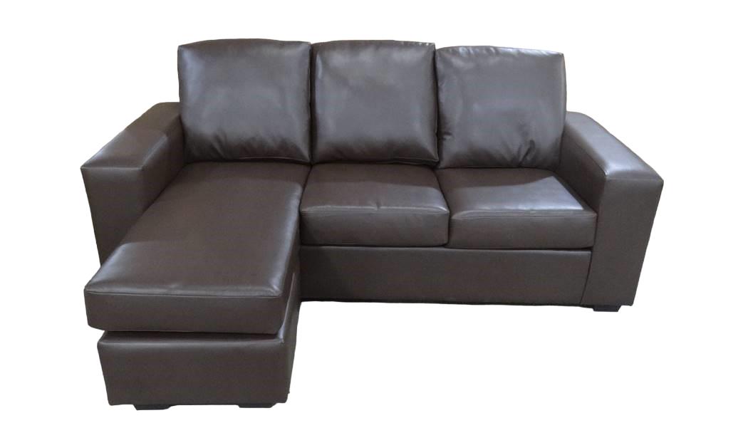 1525 Brown PU Sofa-Chaise W/ Floating Ottoman