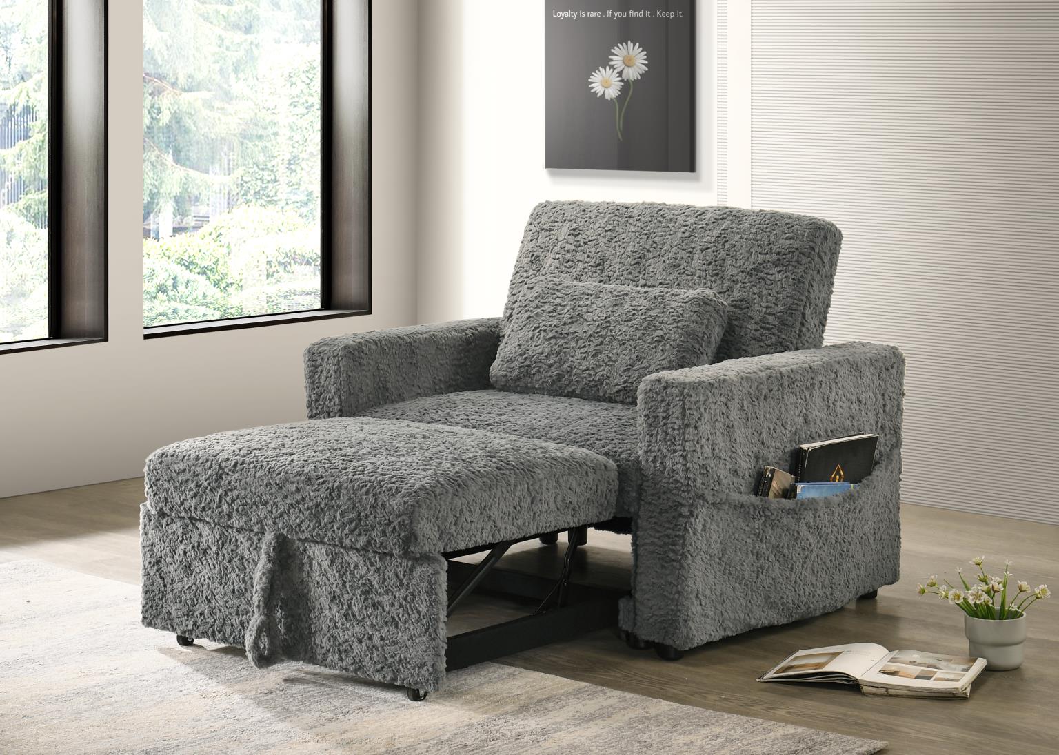 SHAWNEE PULL OUT BED CHAIR W/ ARMS GREY CORDUROY